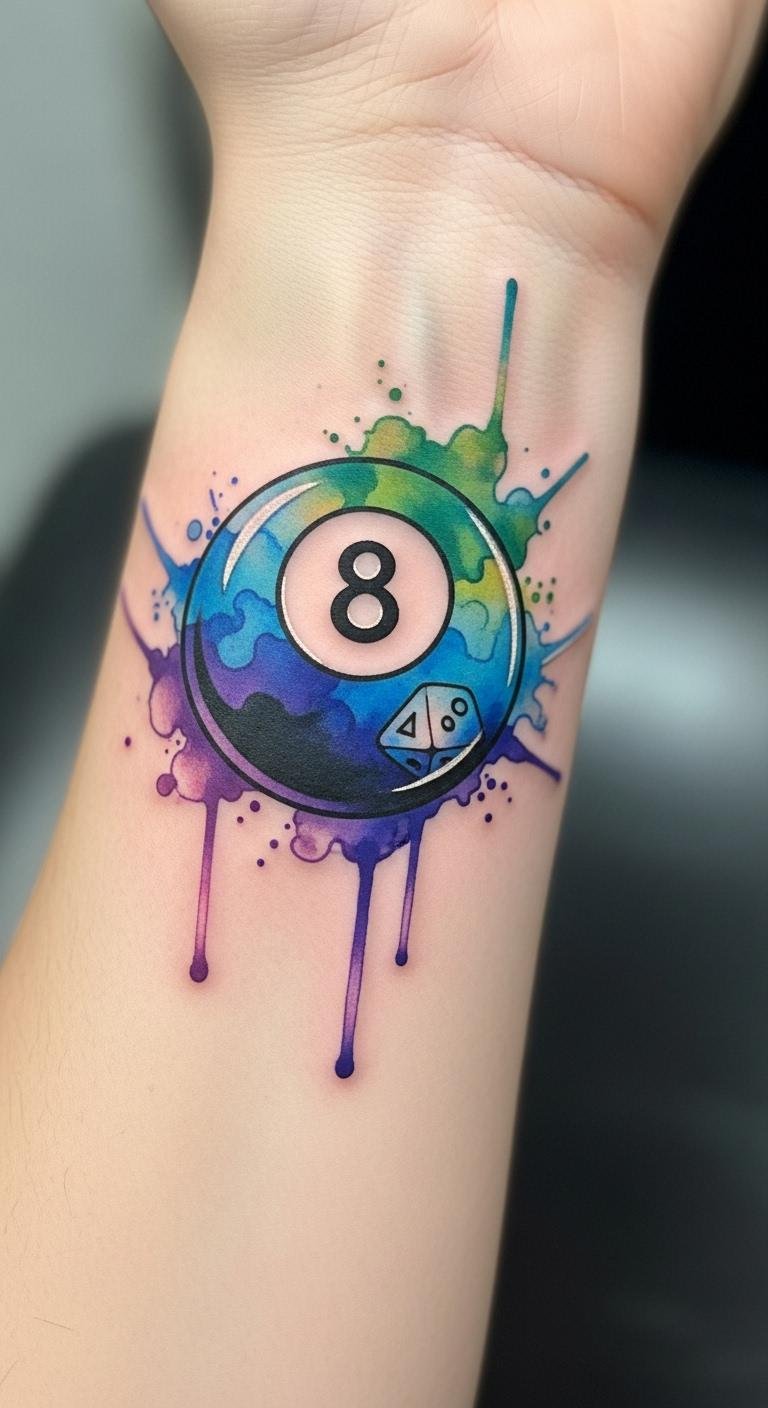 Watercolor 8 Ball Tattoo