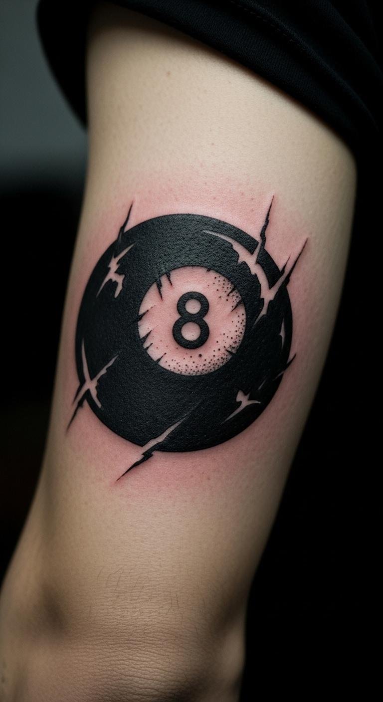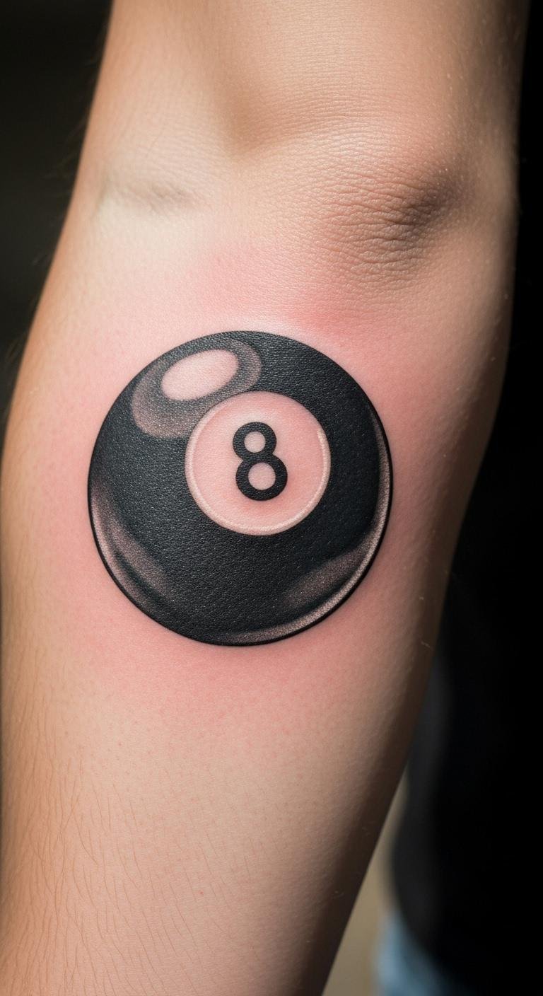 Get the basics right with this timeless look. A simple black and white 8 ball pops on any spot. Start small on your arm for a test run. Use a basic sketch from online templates to guide your artist. This design costs less than custom ones. Try drawing it at home with a marker first. Keep it clean and sharp. Bold lines make it last. Pair it with everyday clothes for subtle flair. Save money by choosing a local shop over big names.