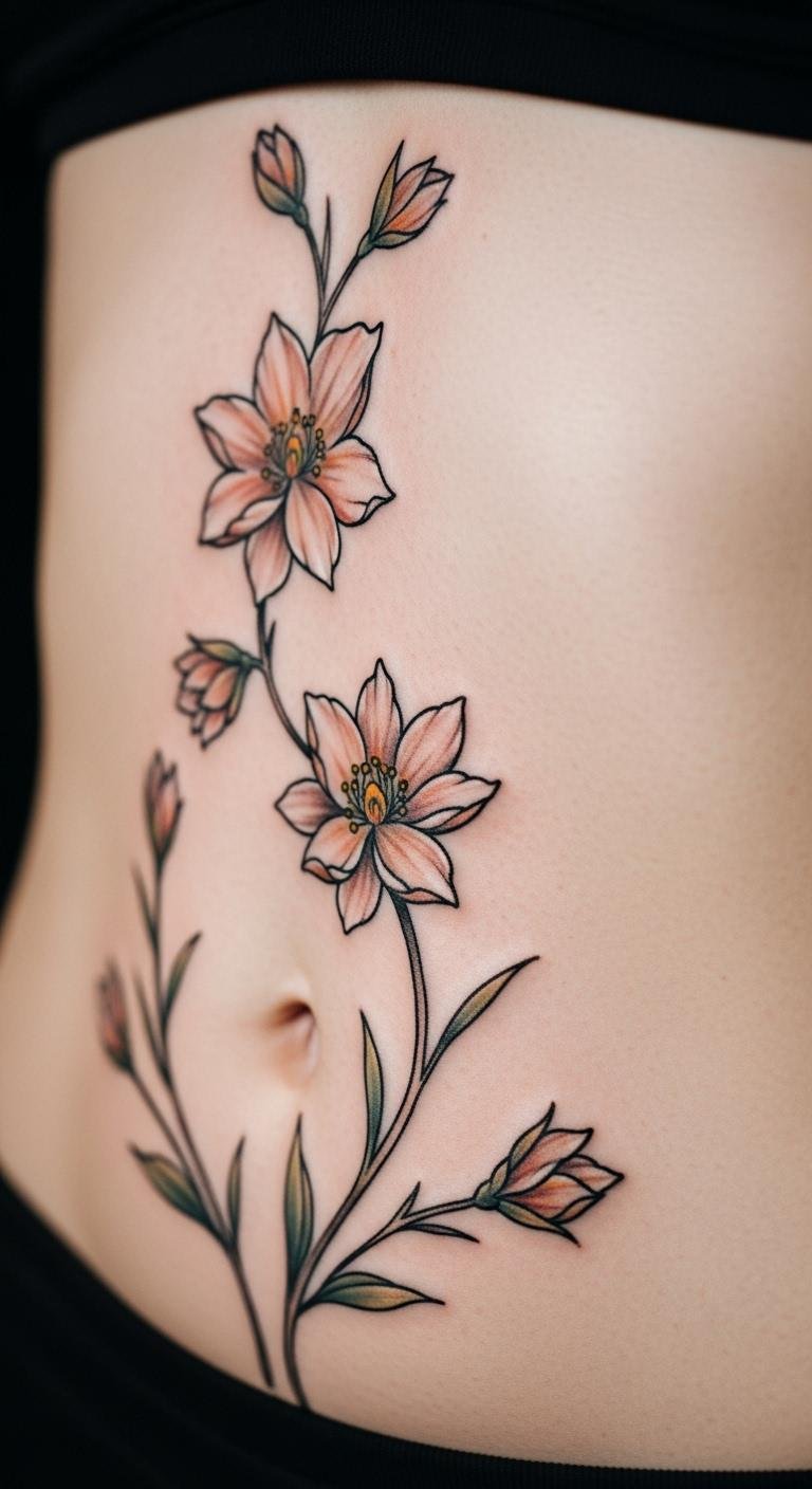 Floral patterns bring beauty to your abdomen. Imagine flowers blooming across your skin. They represent growth simply. Sketch flowers from nature; no cost involved. Apps help arrange them digitally. Prices are around $110 for basic florals. Position for symmetry. Use affordable oils for care. Patterns hold color well. Keep them modest for budgets. This approach is easy and effective.