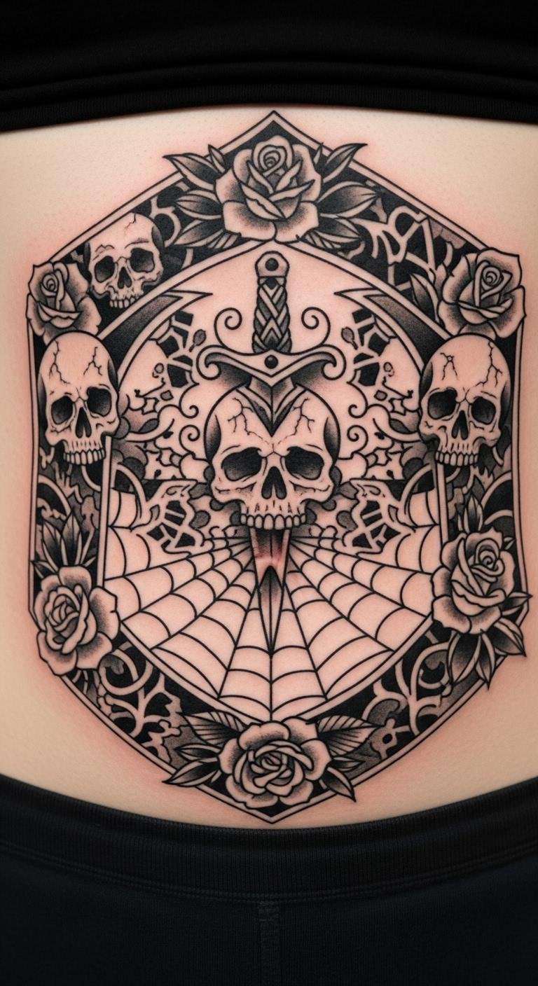 Bold black ink patterns create a strong presence on your abdomen. Think geometric shapes or lines that form a striking layout. They offer a no-fuss way to show personality. Draw patterns on paper first; it’s an easy, cost-free step. Online generators provide templates you can tweak at home. Prices for these start at $100 with local pros. Position them to follow your waistline for a flattering fit. Use budget salves for healing to keep things simple. Black ink lasts well, even with movement. Opt for medium sizes to balance cost and impact. These designs make getting inked straightforward and empowering.