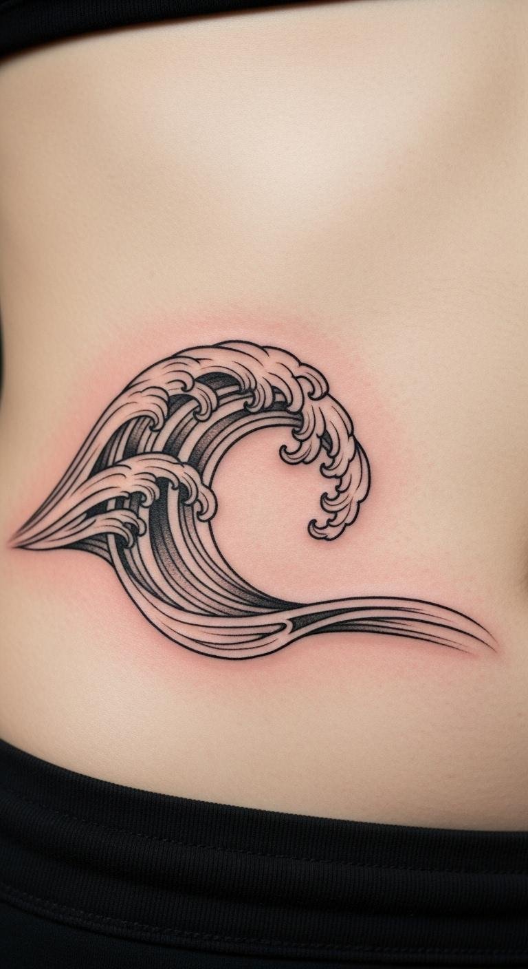 Wave for adventure flows on your abdomen. Think ocean waves. It represents exploration. Draw waves free. Free tools wave-build. Prices around $100. Position fluidly. Maintain simply. Waves hold. Opt for ease. This is direct.