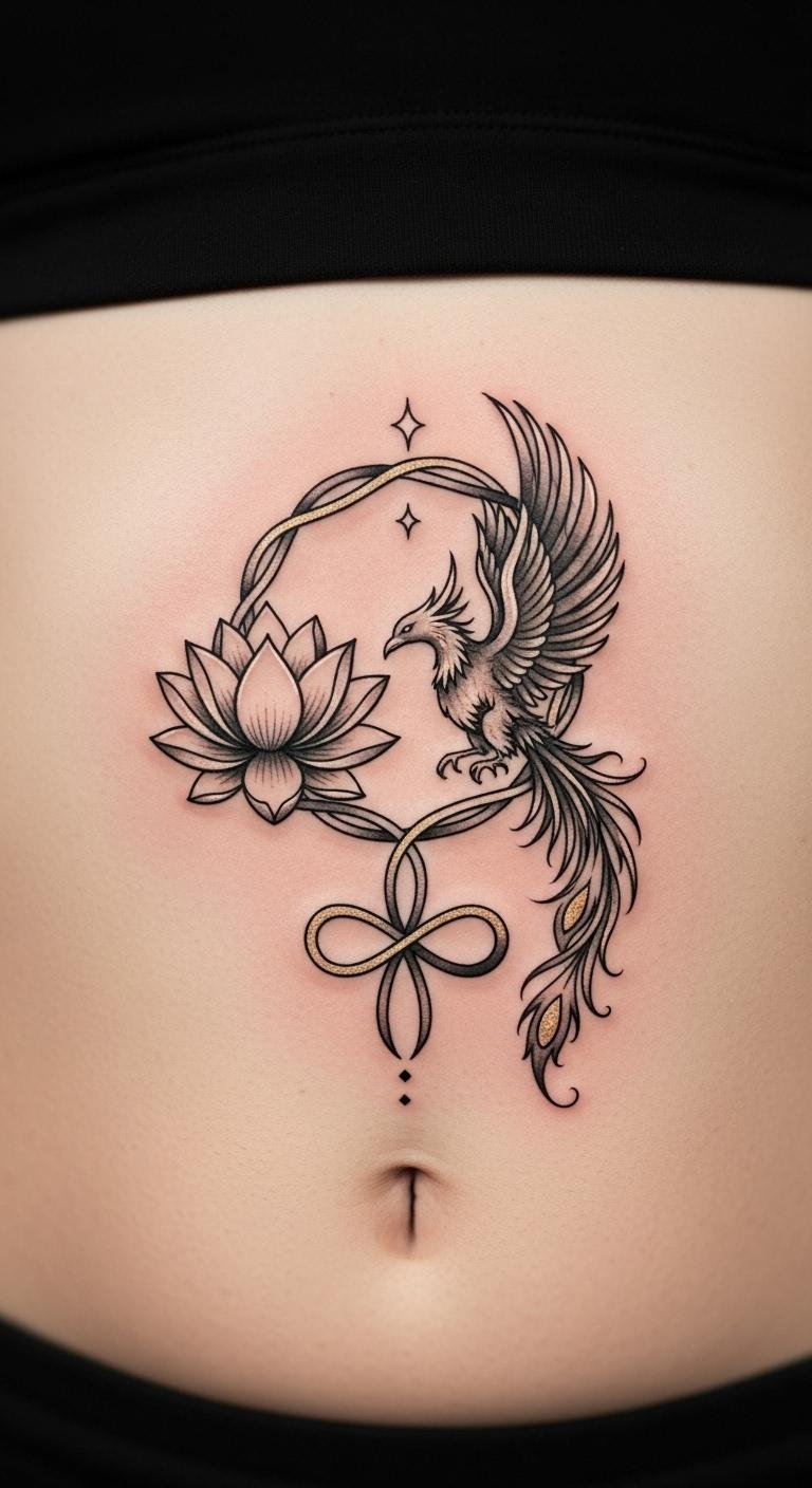 A personalized empowerment symbol boosts your confidence on the abdomen. Imagine a custom shape, like a rising sun, tailored to your story. It reflects inner strength in a unique way. Jot down ideas in a journal; this zero-cost method sparks creativity. Free design software helps you refine concepts quickly. Artists often price these at $130 for personalized touches. Place it where it feels most meaningful, like the center. Maintain it with household items like aloe vera. Symbols adapt to life changes, staying relevant. Keep designs simple to save money and time. This makes the process accessible and fun.