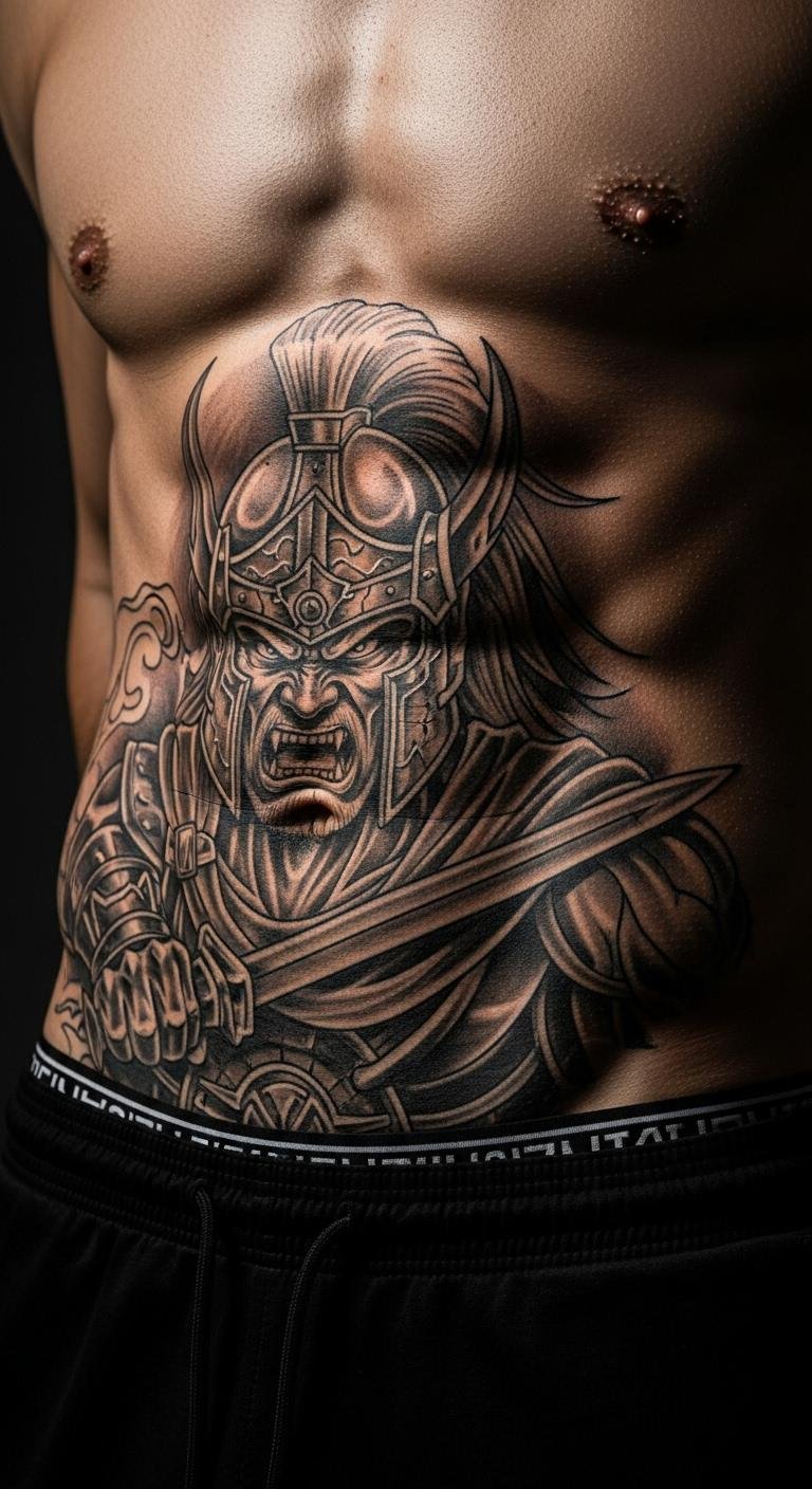 Warriors on your abdomen show strength and resolve. Opt for simple outlines to keep it straightforward. Draw inspiration from history books or free websites. Budget tip: Shop for affordable ink kits if you’re touching up later. Measure your space to avoid awkward fits. Go for thick lines that stand out. This motif pairs great with chest extensions. Prep your skin with lotions to reduce irritation. Real DIY example: Trace a warrior shape on paper and test it on your body. Book shorter appointments to cut expenses. Seal the tattoo with basic ointments for healing.