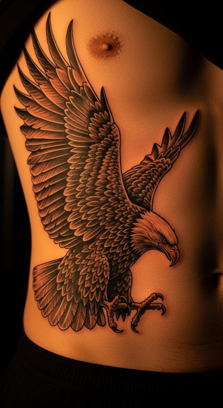 Eagles on your abdomen represent vision and power. Select poses that soar upward. Watch wildlife videos. Budget tip: Choose local overchains. Place for dramatic effect. Use detailed feathers. This pairs with head tattoos. Jog lightly before. Real DIY example: Draw eagles on walls. Break into cost-effective parts. Use protective sprays.