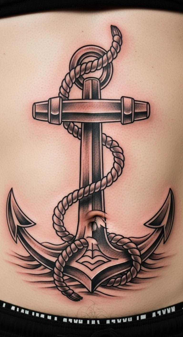 Anchors on the abdomen stand for stability and roots. Go for straightforward shapes that fit your core. Explore ideas via free video tutorials. Budget tip: Choose artists who offer payment plans. Place it centrally for impact. Keep it in black for timelessness. This works with arm extensions too. Drink water before to stay comfortable. Real DIY example: Cut out anchor stencils from cardstock. Break tattoos into affordable steps. Use alcohol wipes for cleaning.