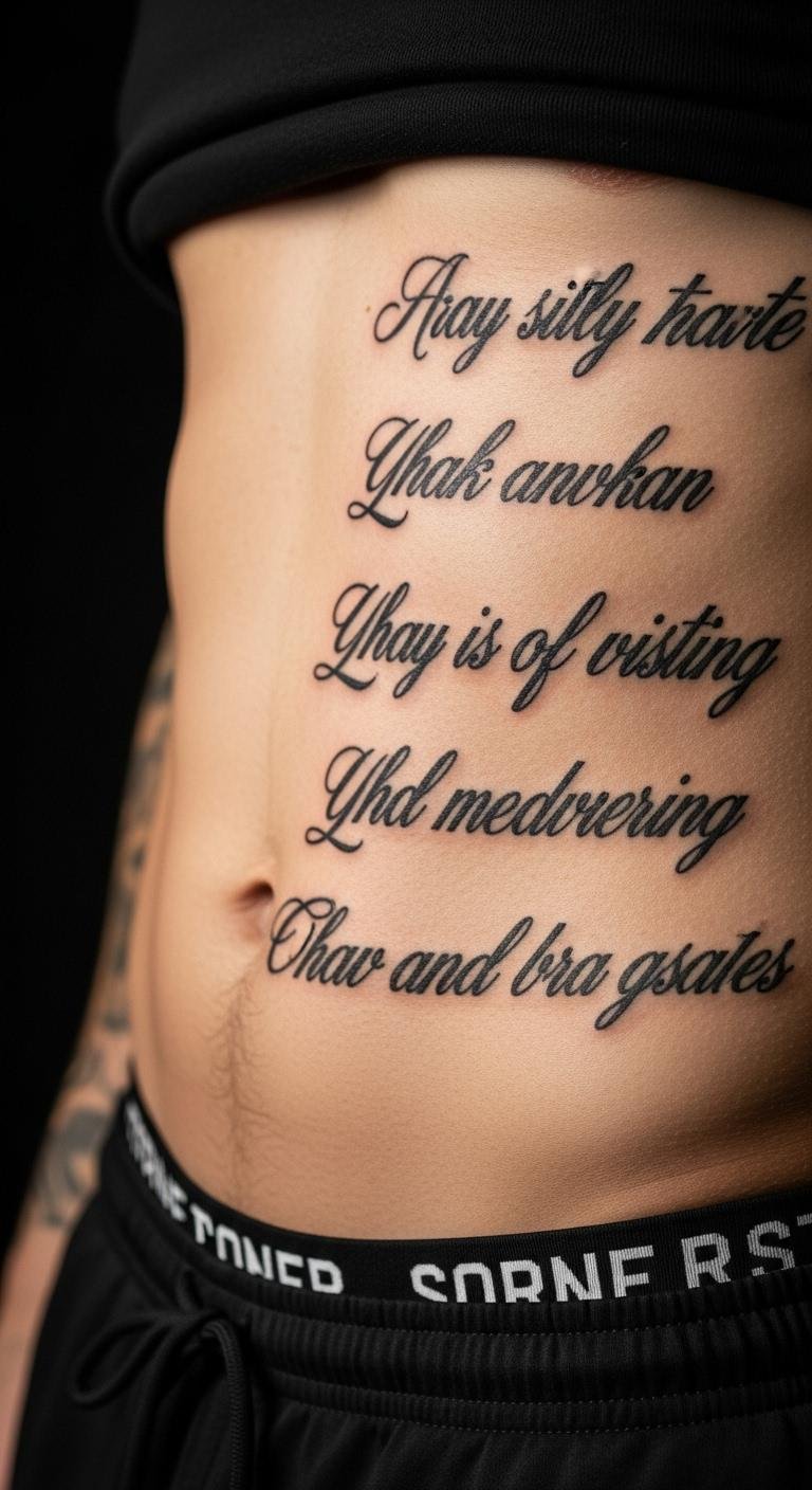 Quotes on the abdomen offer daily motivation. Select short phrases that resonate. Write them out on notebooks. Budget tip: Go for basic fonts to reduce complexity. Place them horizontally for readability. Stick to simple blacks. These extend to thigh areas. Hydrate in the days before. Real DIY example: Test quotes with temporary tattoos. Spread payments over visits. Use scarves for protection.