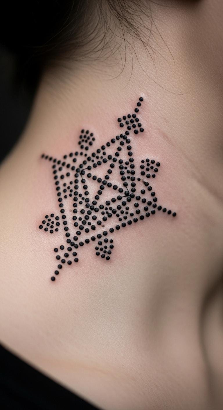 Dots in patterns on your neck build designs. They show balance. Start small. Less than $35. Find group sessions. Dot paper for planning. Use stickers to mark areas. Put it in a hidden curve. Clean gently for lasting effect. Practice with dot pens.