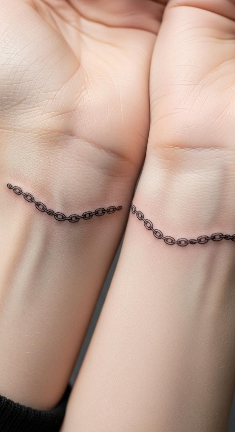 Linked symbols on wrists seal friendships. They mean loyalty. Match with pals. Around $30 each. Find buddy deals. Draw chains together. Use bracelets to preview. Place them side by side. Keep them clean for bonds. Try with colored strings.