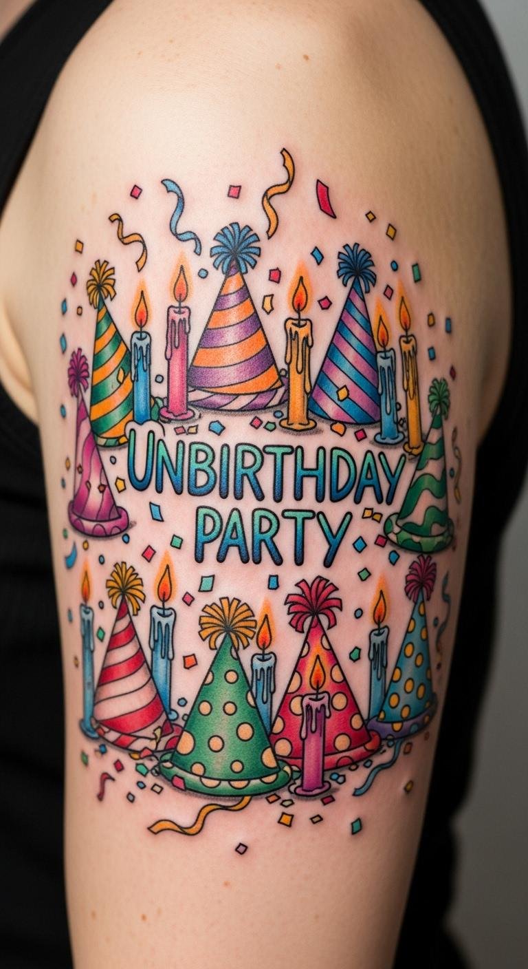 Go for a Mad Hatter hat tattoo to show chaos and creativity. This one stands for wild fun. Sketch a hat shape on your skin with a marker. Free tools online let you edit designs fast. It takes minutes. Pick cheap supplies from a dollar store. For a DIY twist, add tiny teacups around it. Budget idea: Buy sticker tattoos for $5 and test spots. Real example: Use phone apps to merge the hat with your photo. Place it on your arm for easy hide. Short sessions make it simple. Vibrant details bring energy. Customize with colors you love. These steps help you create without hassle.