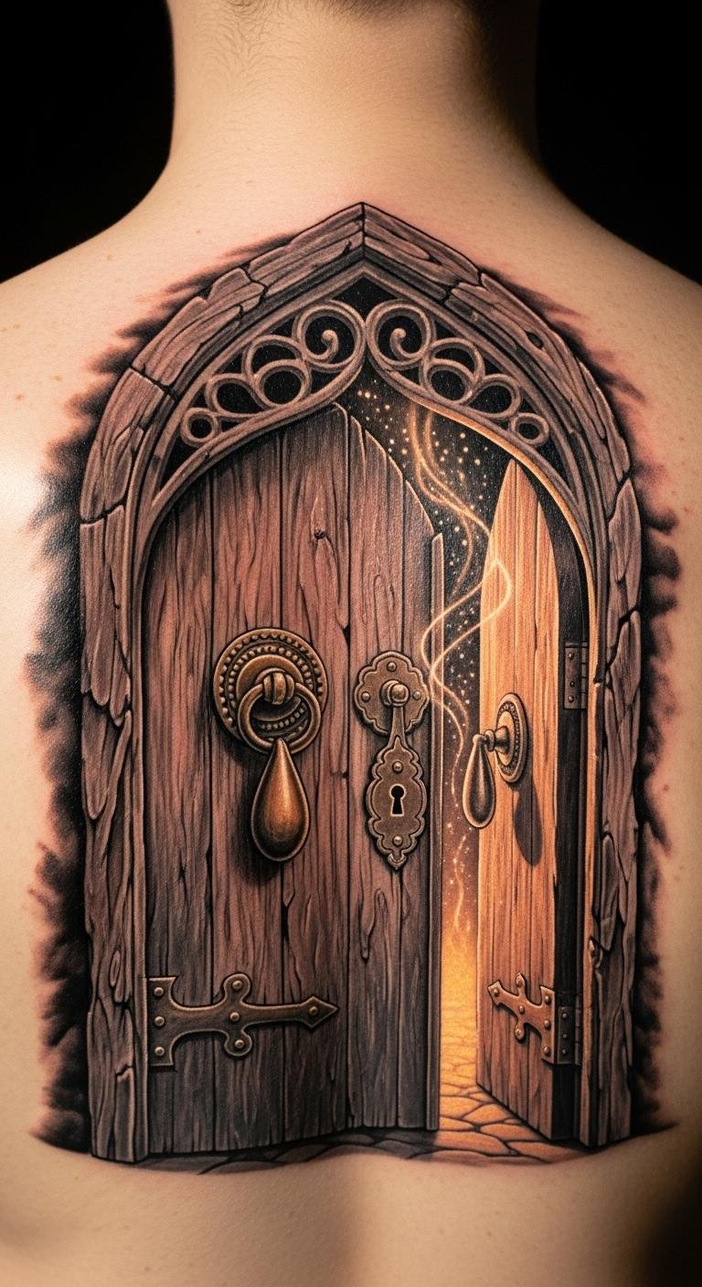 Select a doorway tattoo for new beginnings. It opens paths of imagination. Sketch a door frame first. Apps online design it free. Straightforward process. Budget idea: Use door decals as templates. Cheap online. Real DIY: Paint a door on canvas to test. Place it on your back big. Break it down for ease. Doorway elements spark mystery. Add keys that matter to you. This helps you decide fast.