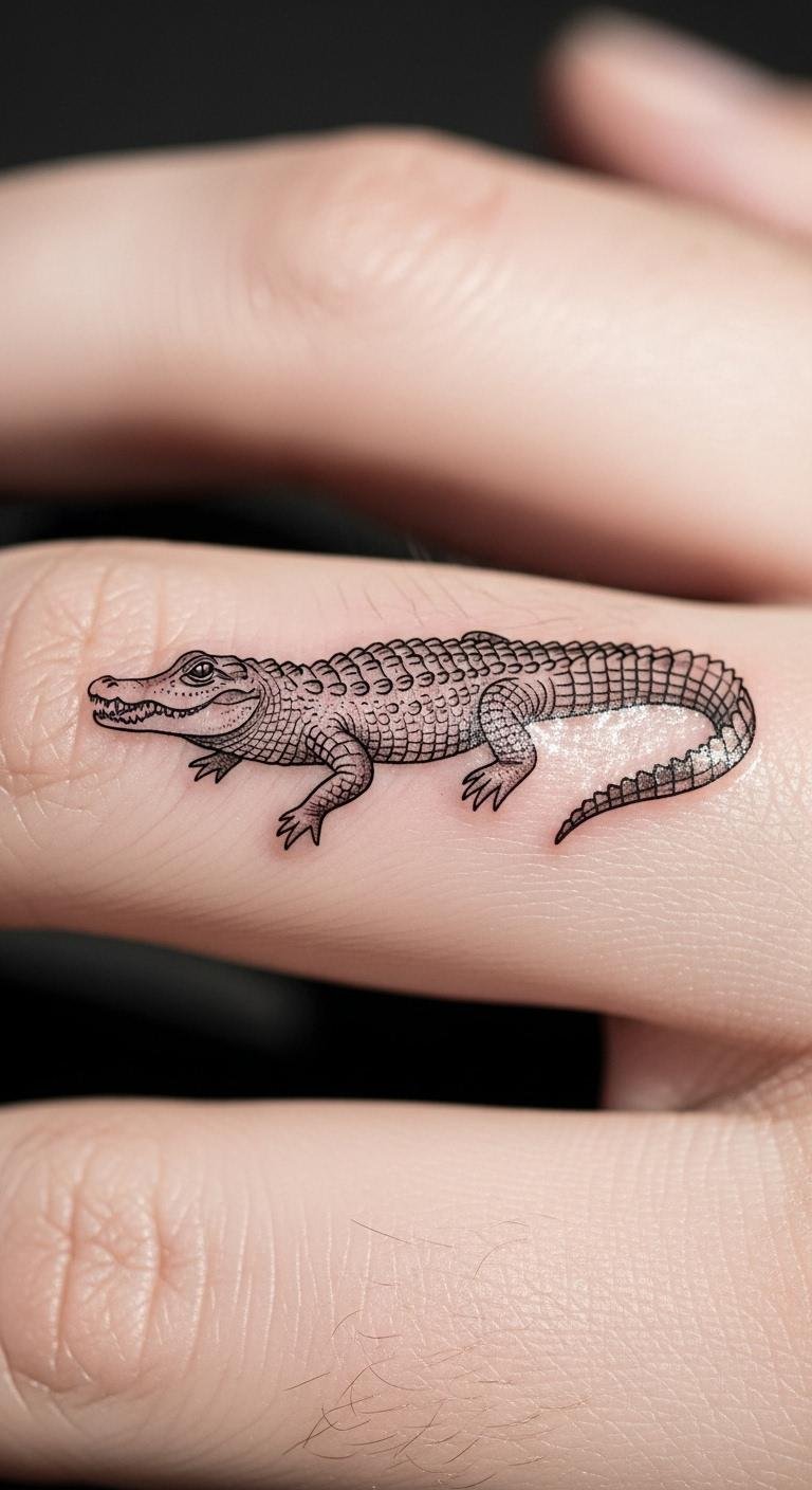 A finger alligator is tiny and bold. Quick and personal. Draw mini versions. Put on finger. Look for fine-line deals. Practice small scales.