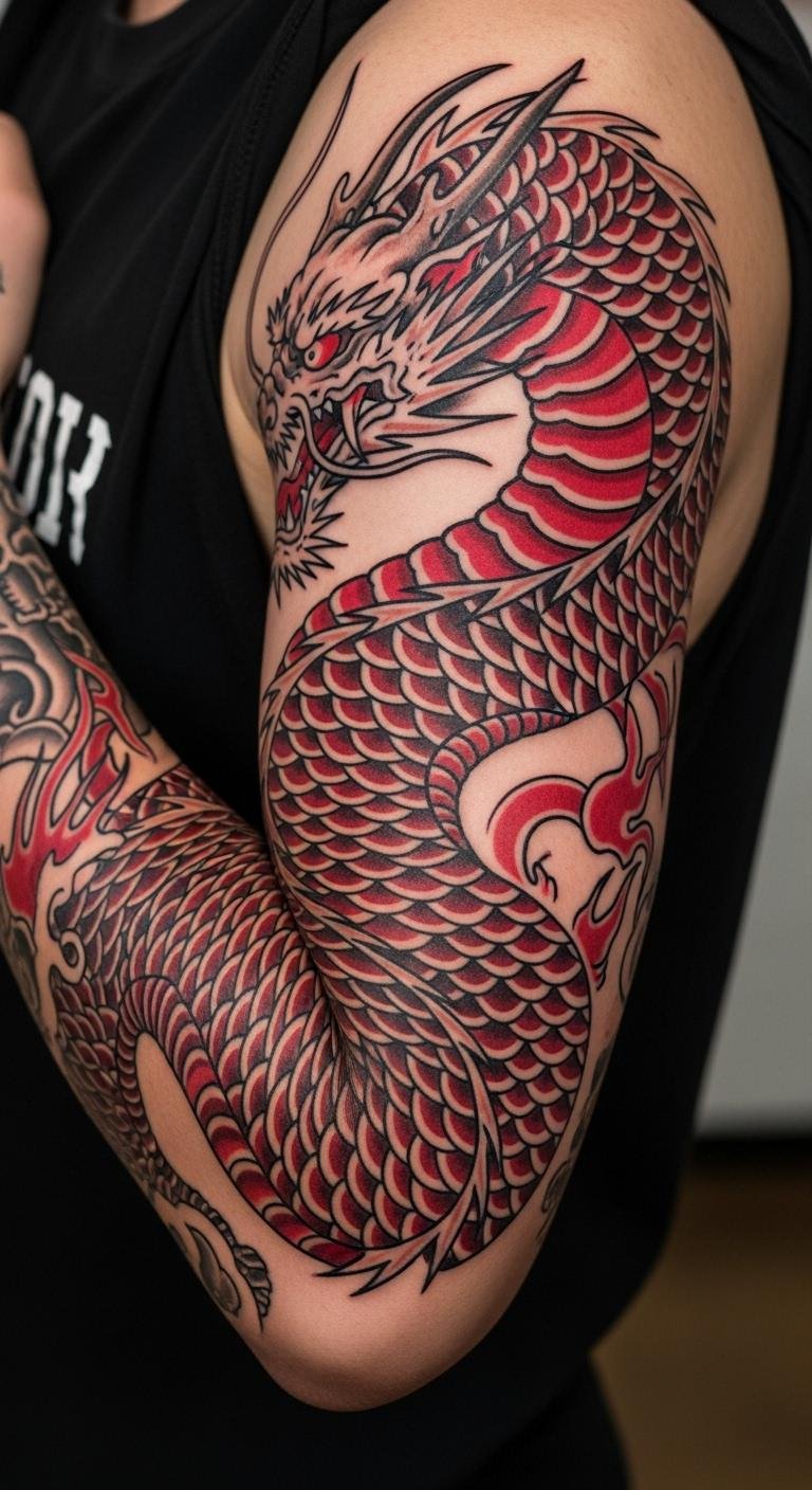 Dragons from Japanese styles bring power. Use them carefully in your sleeve for respect. Sketch dragon outlines with basic tools. Find free inspirations to modify. Opt for fiery colors. Connect with artists who understand the theme. Integrate with American elements. Practice on paper to refine. This method is simple. Focus on respectful designs.