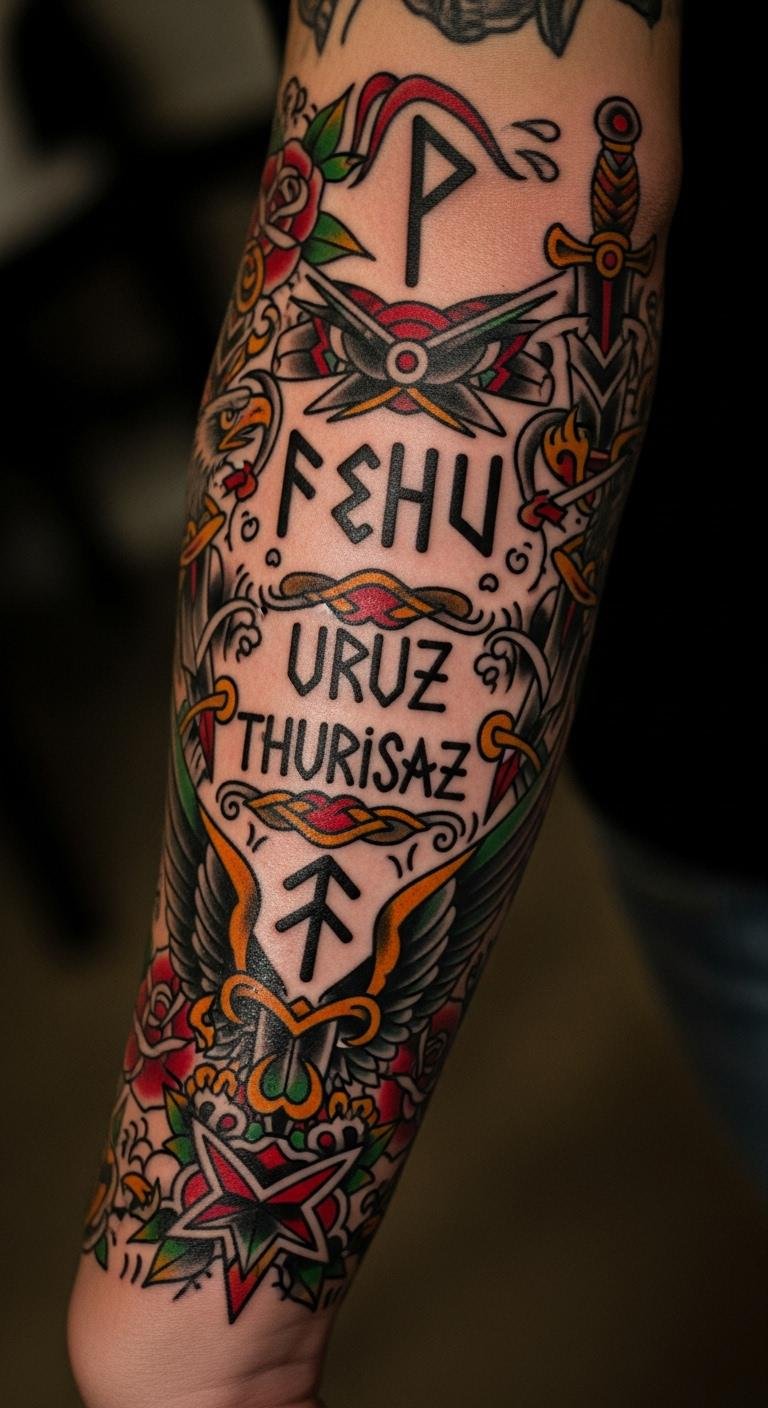 Runes add mystery to your sleeve. They represent ancient stories, fitting into traditional designs. Research runes online and sketch them freehand. Mix with other symbols for a custom vibe. Stick to simple blacks. Contact local shops for budget-friendly options. Place them strategically for balance. Try tracing on your skin with washable markers. It helps decide placement. Go for clear, spaced lines.