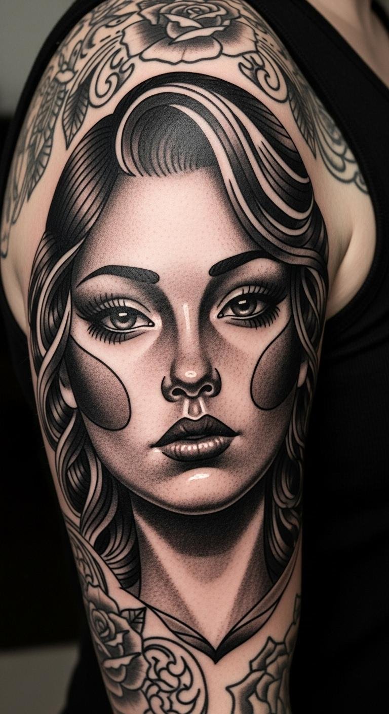 Portraits in black and grey offer emotional depth. They honor people or ideas in your sleeve. Practice shading techniques with pencils at home. Find free portrait references online. Keep it grayscale for a timeless look. Look for artists with specials on sessions. Add to existing designs for cohesion. Use your phone camera to preview ideas. It saves time. Focus on artist skill for quality.