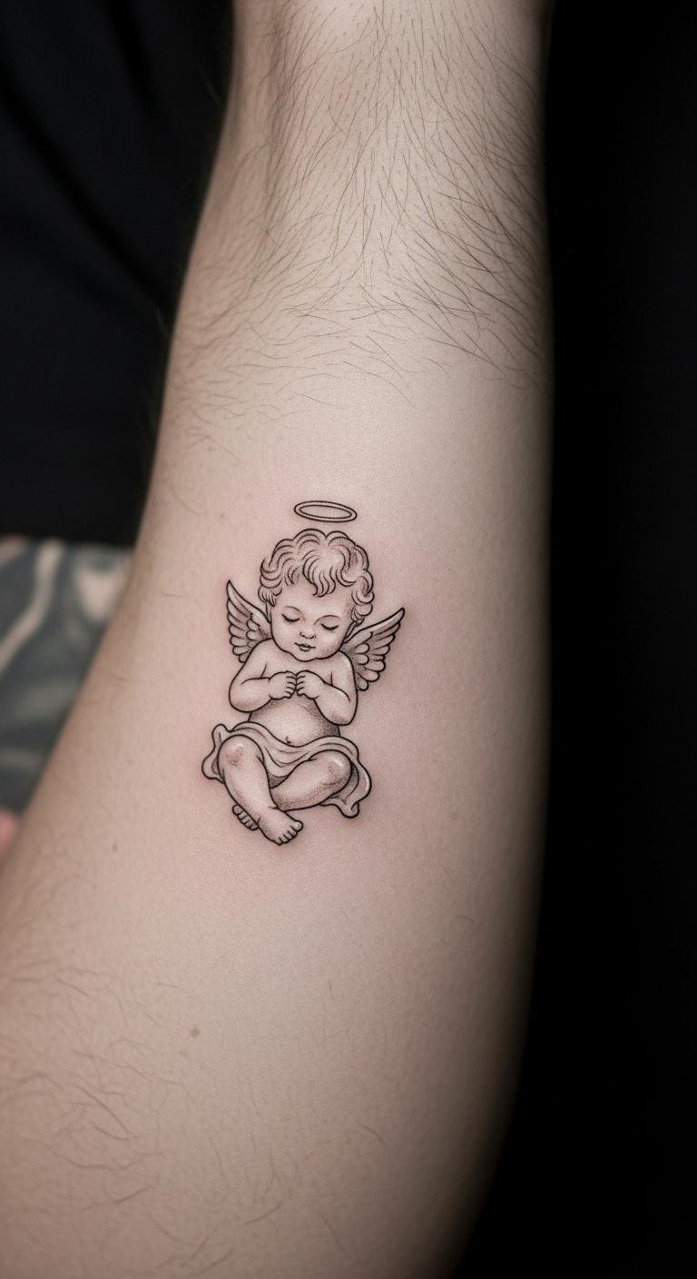 Baby angel forearm ink offers a touch of innocence mixed with quiet strength, great for understated power. Imagine a tiny figure that speaks volumes. Jot down concepts on scrap paper to start. Look for deals at walk-in studios for around $50. Take small steps: Practice drawing cherub faces with a pencil. Go for minimalist styles to keep costs low. Real DIY idea: Create temporary tattoos with marker and rubbing alcohol at home. Place it on your forearm for easy visibility. Add halos for subtle symbolism. This design reminds you of pure resilience. Focus on what feels right for you.