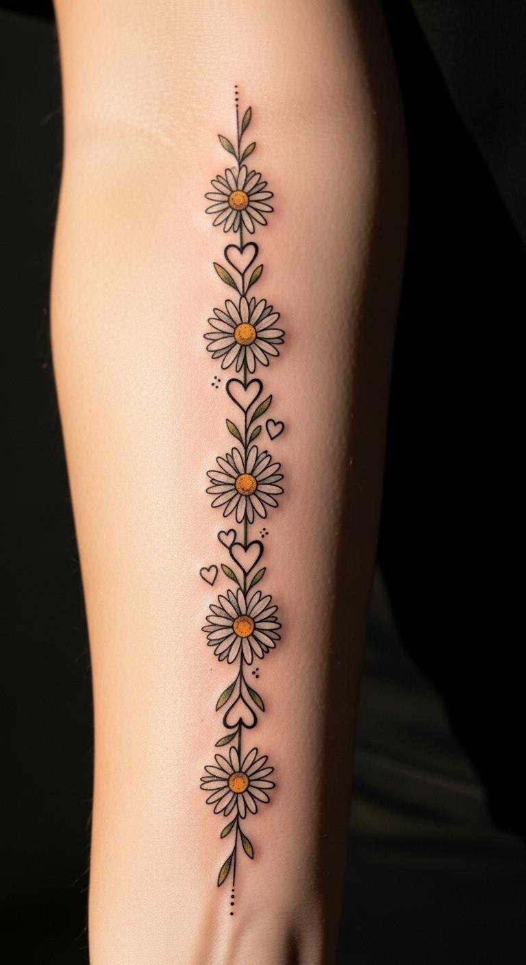 Daisy chains with hearts make great friendship tattoos, symbolizing lasting ties. Wrap it around your forearm for a reminder. Practical step: Share the idea with a friend and plan together. Money-saving tip: Group tattoos can reduce fees by 10%. Customize with shared motifs. String beads as a DIY version. Keep it heartfelt and easy.