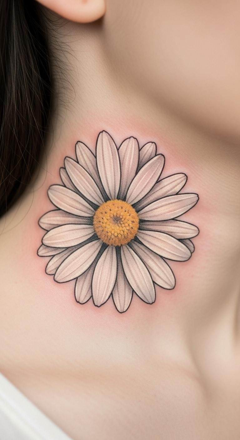 Simple daisy tattoos embody purity, ideal for innocent new chapters. Neck placements keep it elegant. Use white ink for subtlety. Simple tip: Focus on core shapes in your sketches. Budget hack: White ink tattoos are priced like basics at $95. Personalize with light details. Trace outlines at home. It’s straightforward and pure.