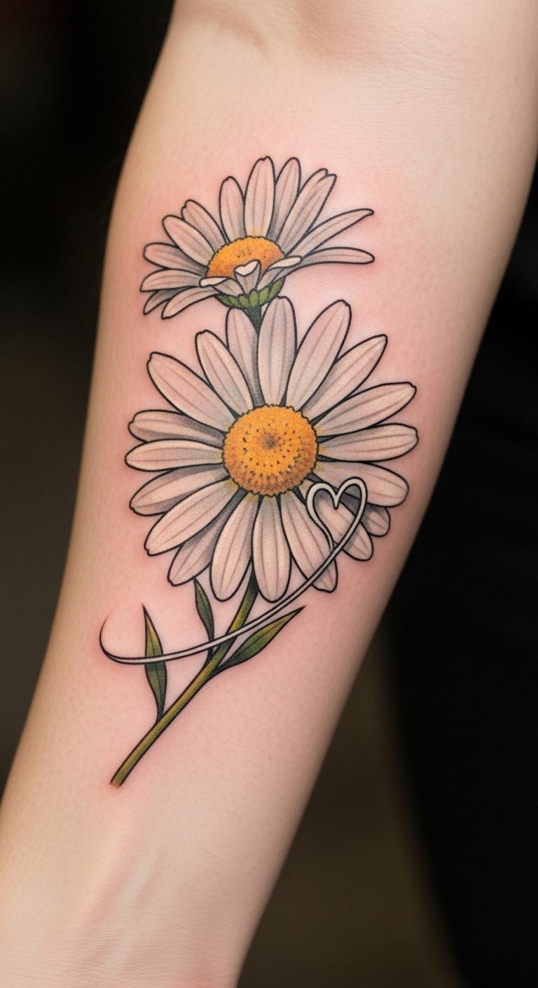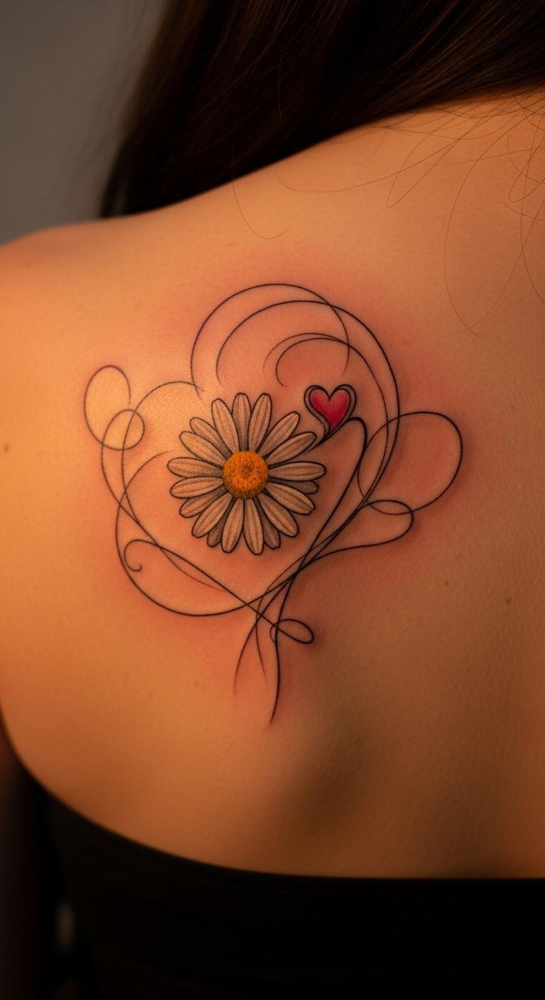 Combine daisies with hearts for love and fresh starts, placing it on your back for significance. Easy action: Blend heart shapes into flower designs online. Save on costs: Heart adds are minimal, around $105. Make it story-based. Draw combined elements at home. This keeps love alive affordably.
