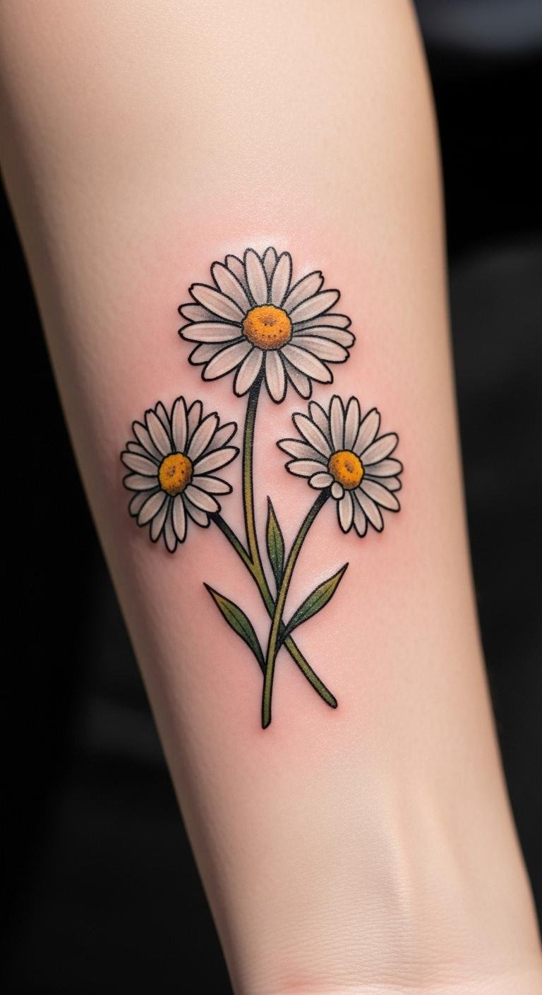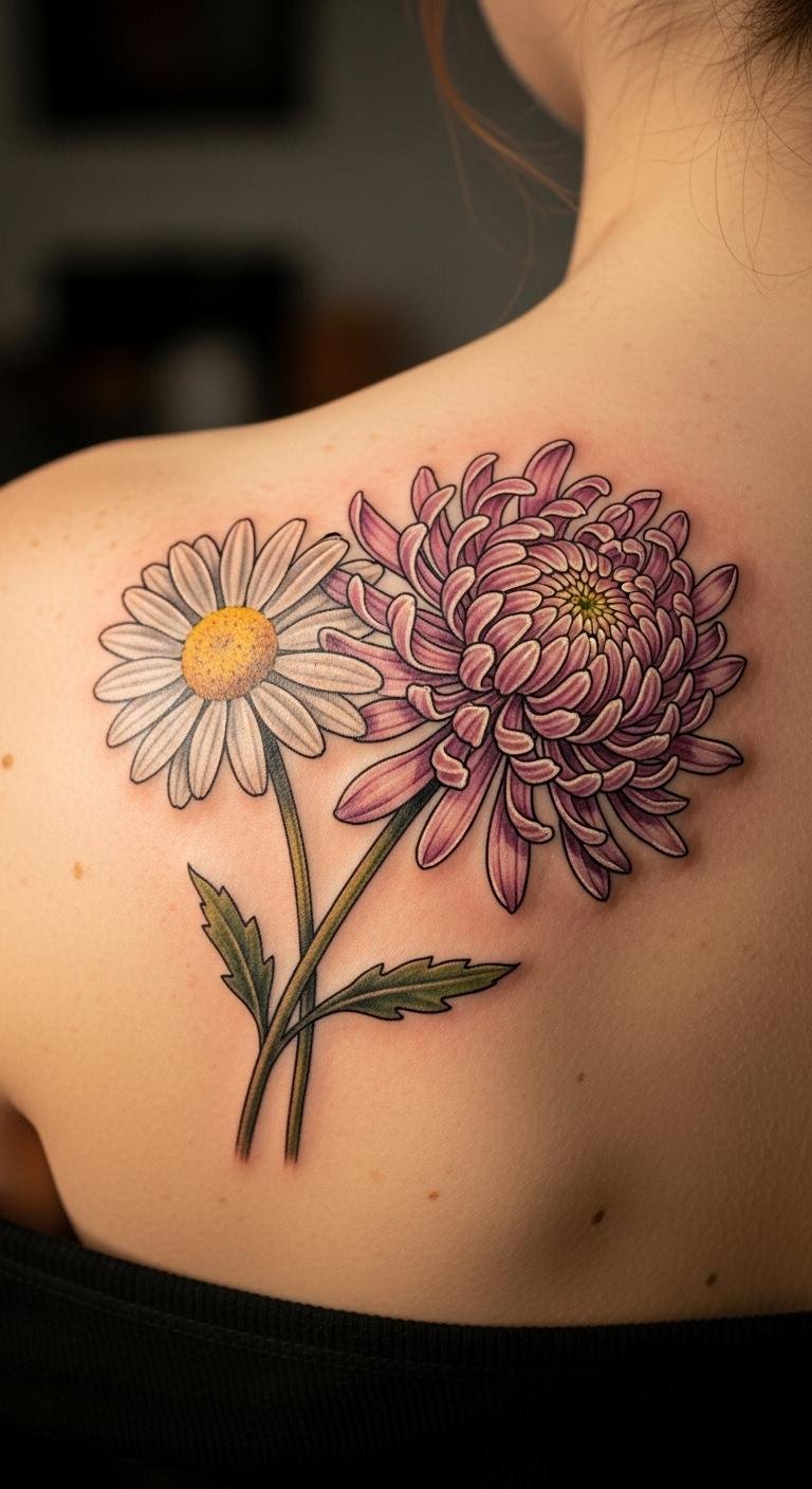 Pair April’s daisy with November’s chrysanthemum for a tattoo that honors multiple connections, like siblings or seasons. This design symbolizes ongoing growth. Position it on your shoulder for balance. Practical idea: Layer drawings of both flowers on paper to plan. Budget-friendly: Combo designs can be $150 if kept simple. Make it special with shared colors. Use craft paper to mock up at home. It’s an easy way to blend stories.