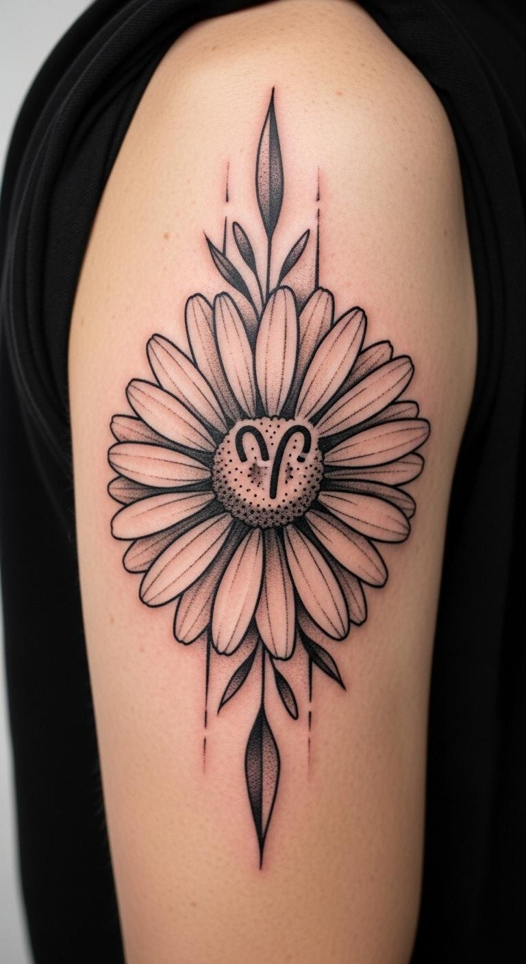 Add your zodiac sign, like Aries, to a daisy tattoo for a personalized cosmic touch. It represents renewal tied to your stars. Try your arm for visibility. Simple action: Search free zodiac icons online and pair with daisy sketches. Save cash: These additions often cost the same as a standard tattoo, around $120. Customize the sign’s size. Draw it on with a pen for DIY testing. Keep it meaningful and straightforward.