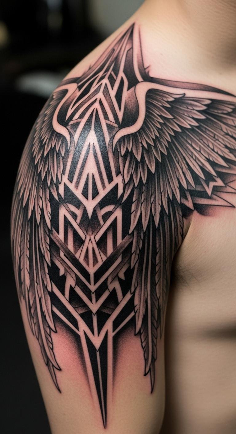 Mix abstract shapes for a modern twist on protection. Start with geometric ideas from free resources. Place it on your shoulder for balance. Look for artists with set rates. Incorporate patterns using grid paper. Build it over a couple visits. Focus on the core figure. Try doodling at home for fun. This approach saves money while looking fresh.