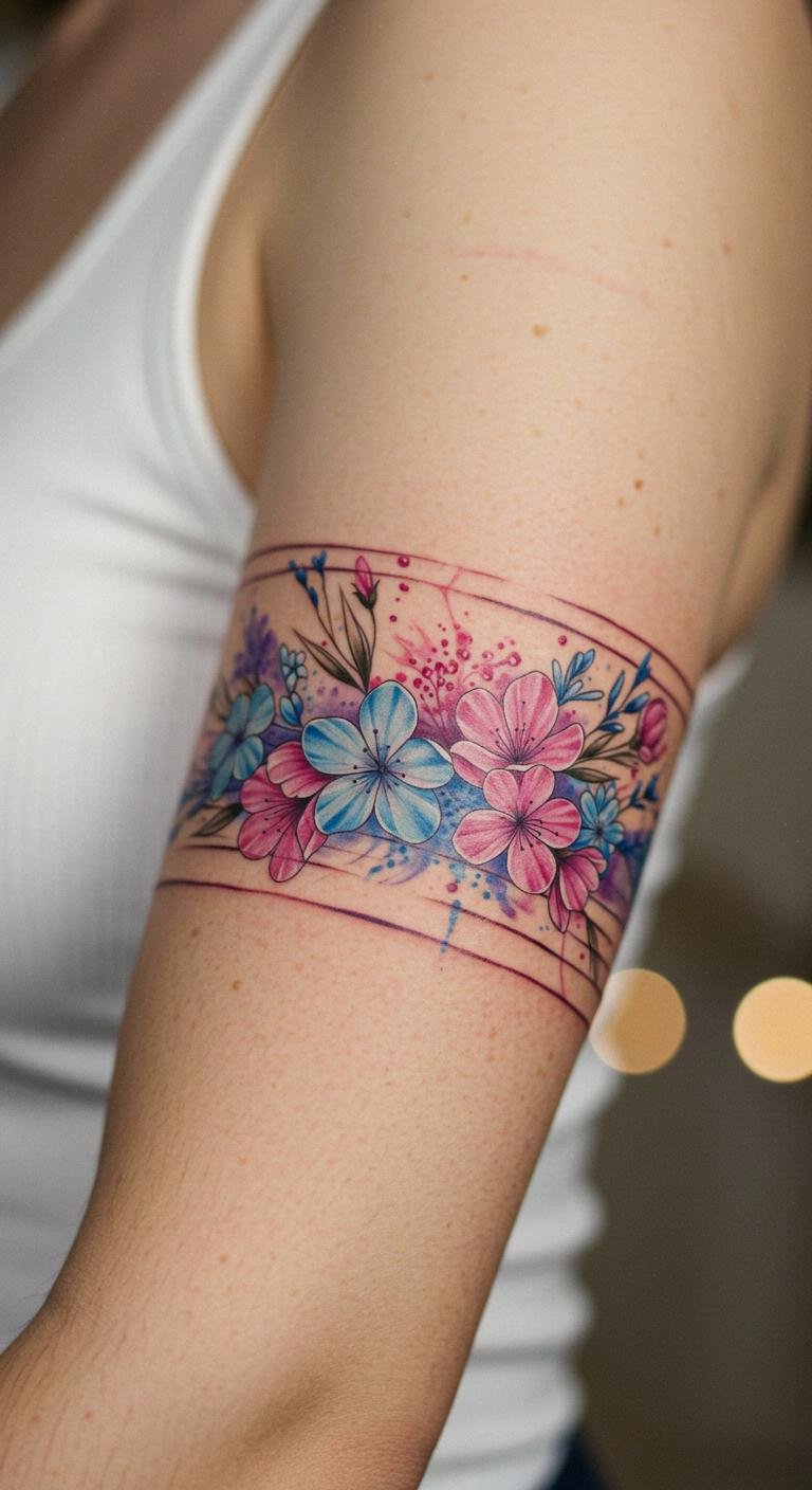 Colorful armbands pop with hues like reds and blues. Choose themes that brighten your style. Start with a base color. Budget tip: Use colored pens to mock up at home—costs pennies. Experiment with shades. Real DIY example: Apply temporary colored tattoos to test combinations—easy and affordable. Layer colors for depth. Pick spots that show them off. This style stands out. Go for quick applications. Keep designs lively. End with something fun. Colorful options add a fresh twist to traditional bands.