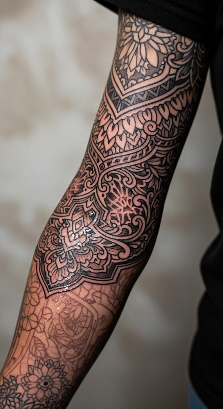 A cover-up ideas sleeve hides past tattoos, with new layers on your arm. Assess old ink first. Artists advise on options. Budget for updates.