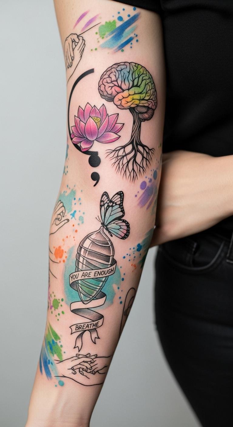 A mental health expressions sleeve shares your path, with calming elements on your arm. Note what helps you. Artists can guide designs.