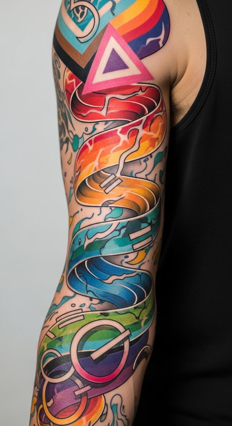 An LGBTQ+ pride sleeve shows support, with pride symbols on your arm. Select meaningful colors. Keep it personal and visible.