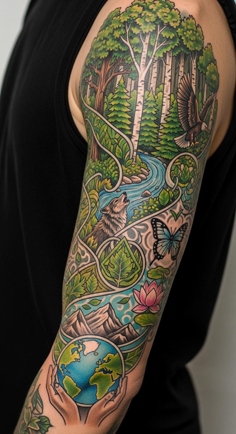 A symbolic narrative sleeve uses icons to share your story on your arm. Think of symbols like a heart for love, woven together. Draw your narrative on paper to start. Artists offer this for about $200, with payment plans. Use free online tools for layout ideas. Choose forearm spots for easier care. Test with washable ink. This design reflects your journey. Keep up with home remedies like aloe. Tailor it to your experiences.