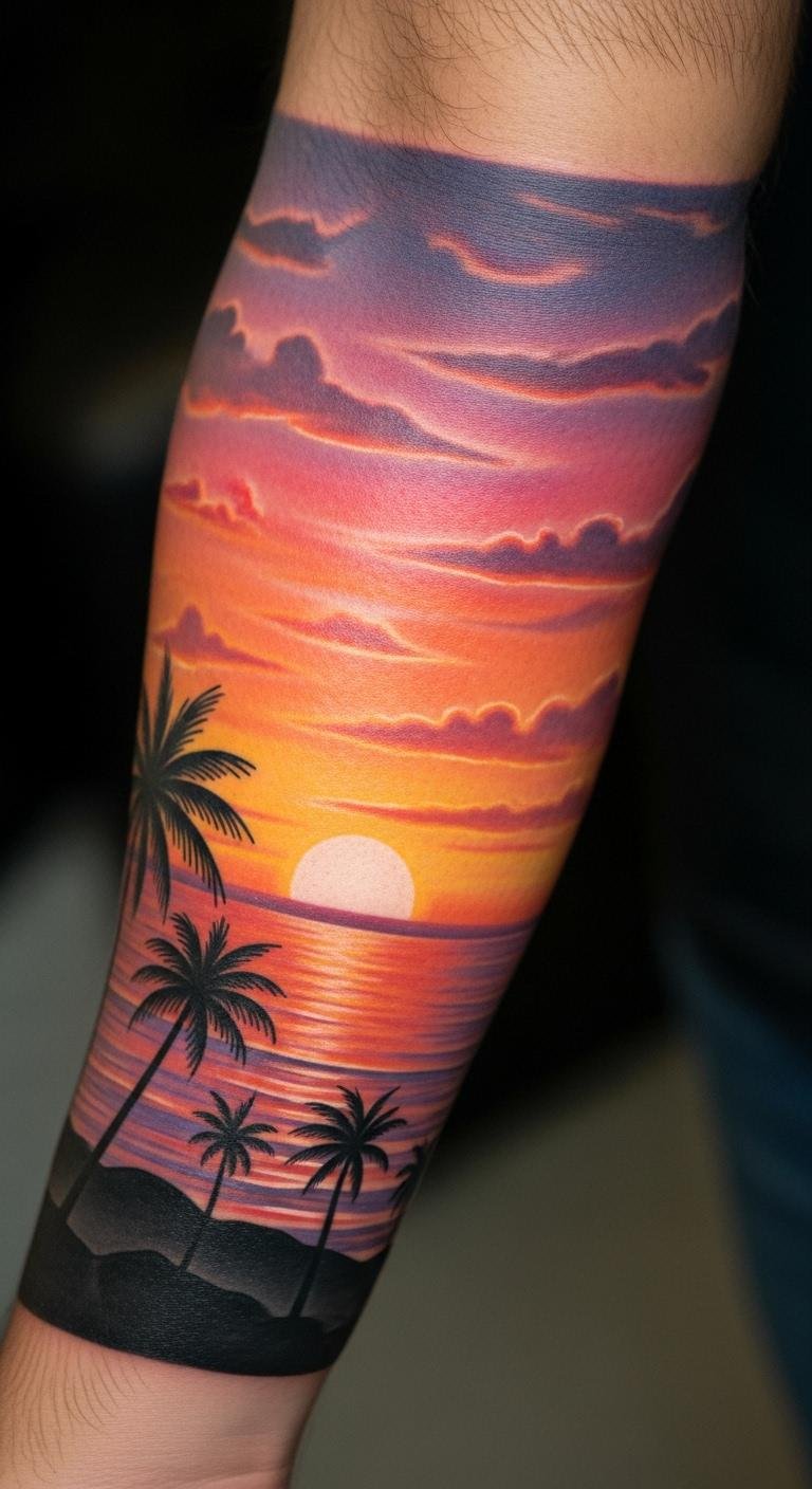 Integrate sunset scenes for a warm sleeve. Plan color gradients. Get free sunset refs. Choose budget artists. Place on arm. Include elements. Ease pain. Maintain shades. Scenic and economical.