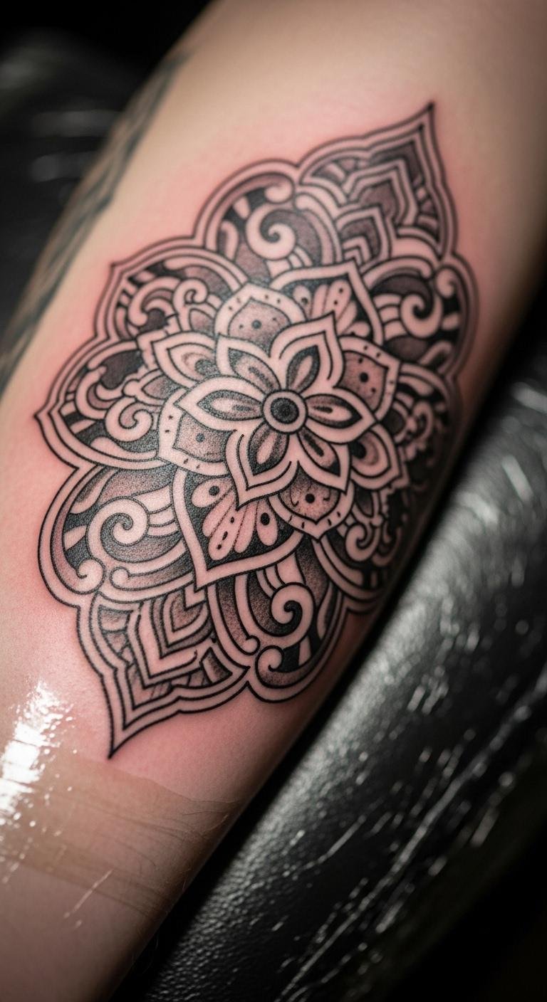 Black ink makes a strong arm statement. Go for solid patterns that pop. Put on the forearm for boldness. Practice with black markers. It’s a quick, free step. Expect $120 for coverage. Find blackwork pros online. Keep it meaningful. Healing needs patience. Use clean bandages. This style demands attention.