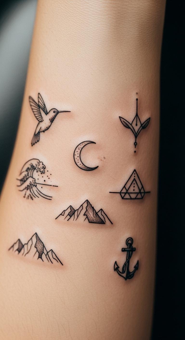 Small tattoos together create a cool arm look. Pick a mix of symbols that match your life. Arrange them on the upper arm for balance. Draw a layout on your skin with washable ink. This costs nothing and helps visualize. Each piece might be $40. Look for package deals at shops. Start with one and add more later. Healing varies, so clean each gently. Cover with clothing during recovery. This method lets you build over time.