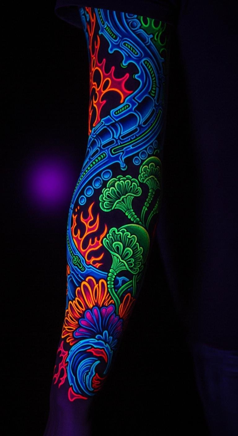Glow tattoos shine for nights out. Choose UV ink for events and fun. Put it on the bicep for impact. Test with glow stickers first. It’s an easy, cheap trial. Prices are around $90. Find artists who use safe materials. Keep designs simple to glow better. Healing takes three weeks. Avoid water at first. This adds excitement to your routine.