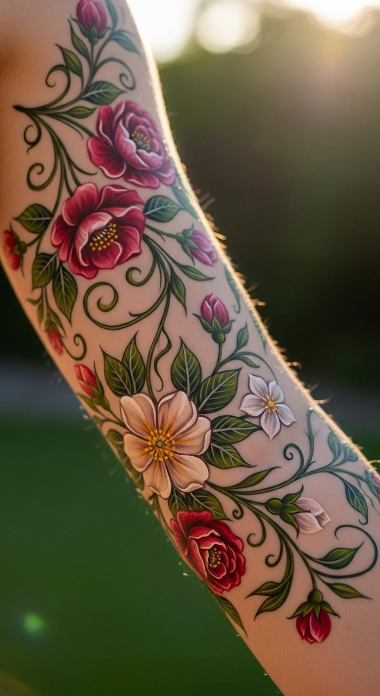 Flowers bring nature to your arm. Select roses or abstract blooms for elegance. Place on the outer arm for show. Draw ideas with colored pencils. It’s free and fun. A design might cost $100. Search for floral specialists nearby. Add twists like favorite colors. Healing involves light care. Use natural oils. This option brightens your look daily.