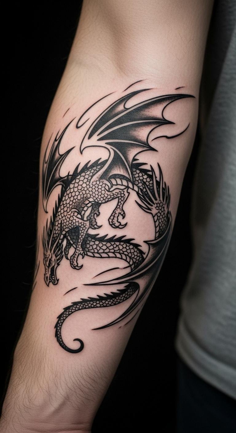 Dragons symbolize power in flight. Ink one on your forearm. Base it on fantasy drawings. Doodle with markers at your table. Use temporary stencils for practice. Find sales at local shops. Stick to outlines for budget reasons. Plan: sketch the body, add wings next. This design will ignite your arm.