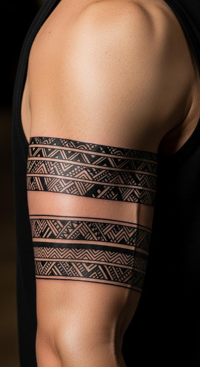 Armbands create a strong frame. Wrap one around your upper arm. Design with string measurements. Use tape to simulate on your skin. This costs nothing to try. Check for band specials at studios. Go for even lines to save. Steps: measure arm, draw band, test. It will define your look.