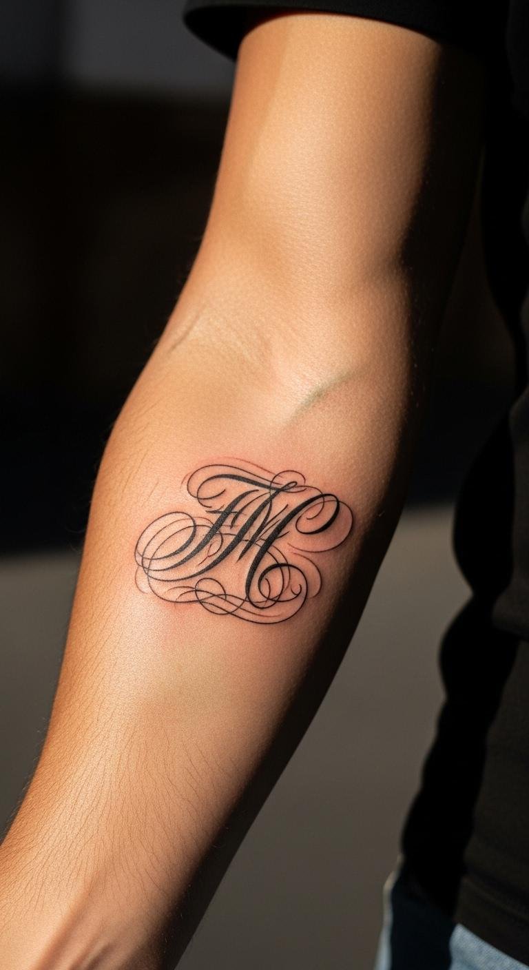 A custom initials script on your forearm adds a personal touch, like your initials in stylish letters. Envision smooth writing that means something to you. Write scripts at home with pens—zero cost. Find cheap sessions for $40. Put it on visible spots for daily reminders. Simple: vary fonts. Add symbols nearby. Test with stickers. Healing needs light protection. This design suits professional looks. Choose clear styles. It’s an easy personalization.