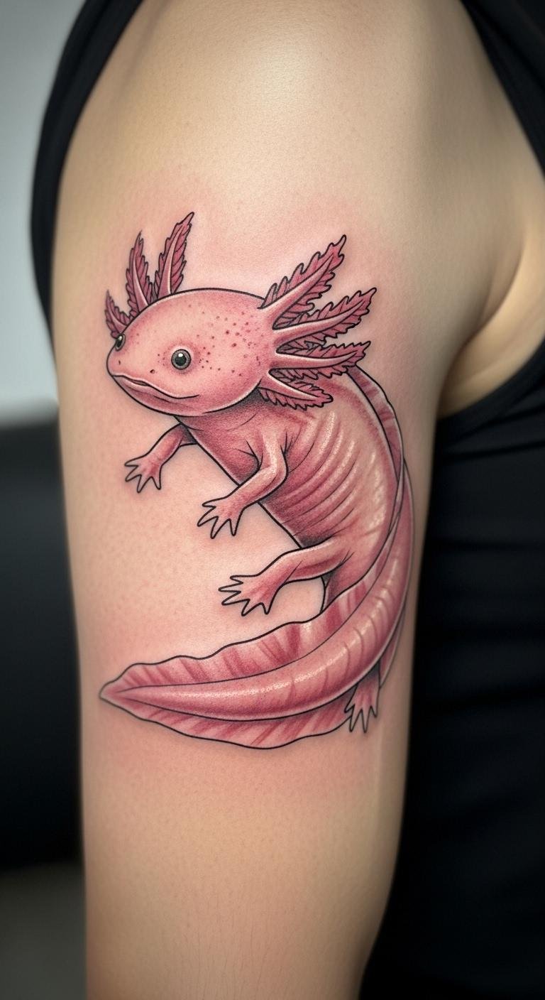 The upper arm offers space for detailed axolotls. It balances visibility and cover. This spot lets you show or hide as needed. Plan with a string outline on your arm. Simple and free. Look for placement experts at affordable studios. They provide guidance. Use arm bands to simulate first. They cost less than $3. Bold the key: upper arm space works well. Focus on healing tips for quick recovery.