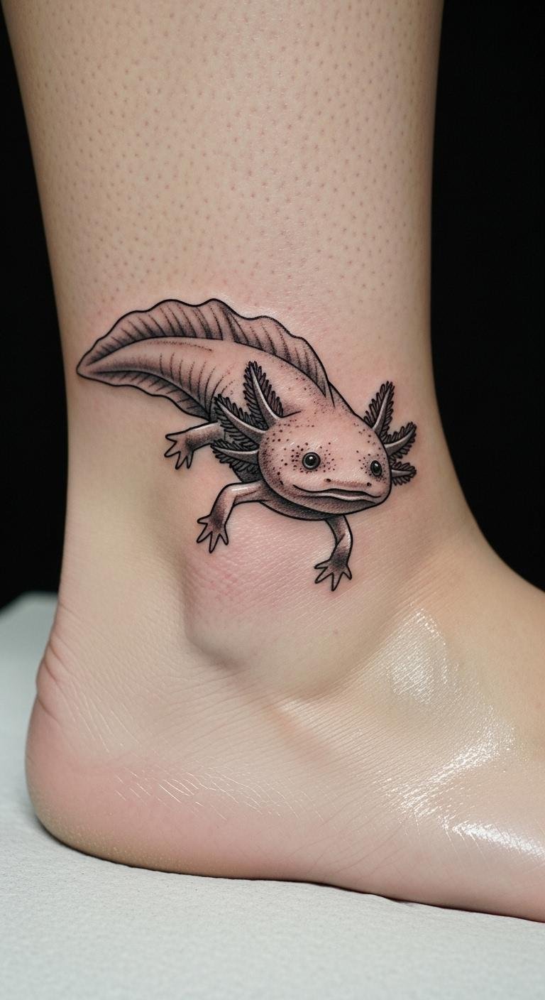 The ankle fits a compact axolotl nicely. It shows off in shoes or bare feet. This spot is practical for daily wear. Outline with string on your ankle. Free method. Look for ankle pros with affordable rates. Local options abound. Try ankle jewelry as a stand-in. Under $4. Bold the key: ankle detail for subtlety. Heal with easy wraps.