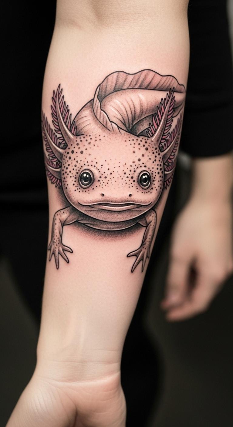 Make the axolotl look extra cute with big eyes. A playful pose adds whimsy. This fits your wrist perfectly. It brings a smile every time. Draw big eyes on a simple sketch with household pens. Free and fast. Find cute-style artists online with entry-level prices. They have specials. Use face paints to try it out. A kit runs about $4. Bold the key: cute features attract attention. Keep it small for easy maintenance.