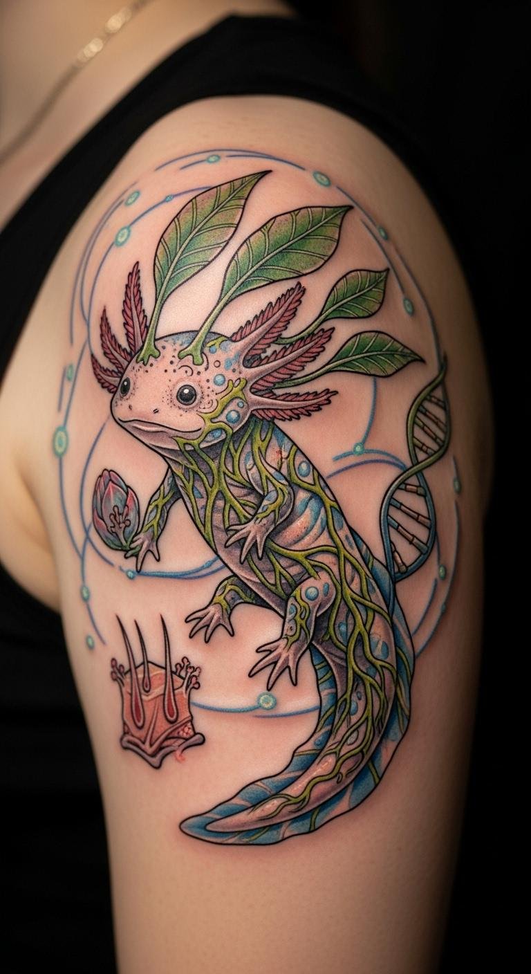 Highlight the axolotl’s regeneration with growth motifs. Leaves or buds show transformation. Put it on your back for impact. This idea speaks to personal strength. Jot down symbols in a notebook at home. No tools needed. Look for symbolic artists at local fairs. They offer good value. Create a clay model of the design for fun. Clay is under $5. Bold the key: regeneration motifs inspire change. Choose placements that heal quickly for comfort.