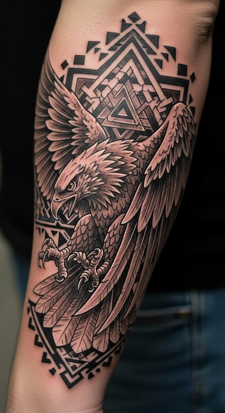 Picture an eagle soaring high in your design, representing vision and strength in a simple Aztec warrior style. This tattoo often features the bird with spread wings and tribal edges for a powerful look. Start by drawing a basic sketch at home using a pencil and paper—grab supplies from a dollar store. Try a temporary version first; pick up stick-on tattoos online for under five dollars to see how it feels. When you’re set, search local artists on free apps and ask for budget sessions. Keep it meaningful by adding a personal twist, like a small date. This approach lets you experiment affordably and confidently.