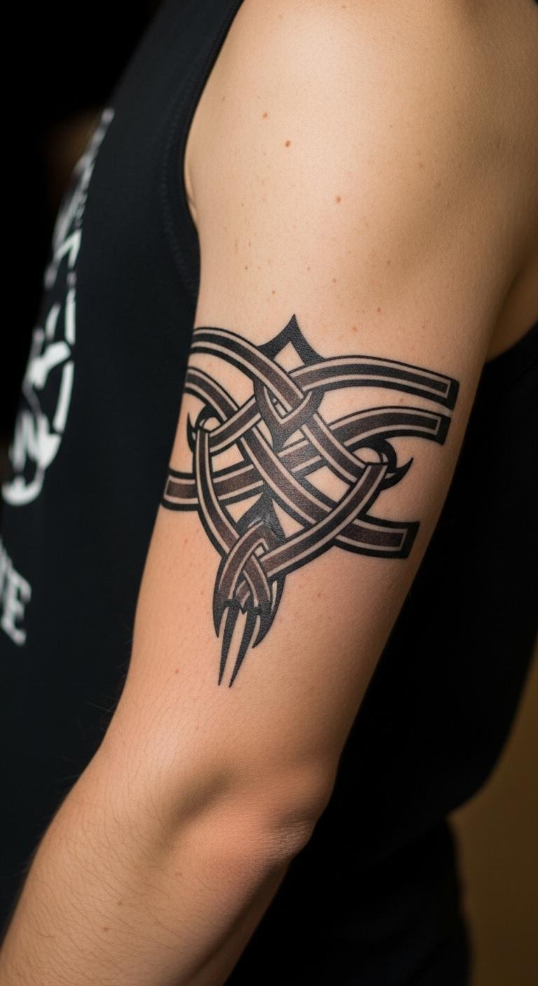 Wrap your arm in tribal lines that tell a warrior story, using bands for a bold wrap. This design focuses on connected patterns. Trace outlines on your skin with washable pens first. Use string to mock up the band at home—free idea. Adjust via free apps on your device. Get quotes from artists through social platforms without fees. Tailor it by including a basic symbol for a personal touch.