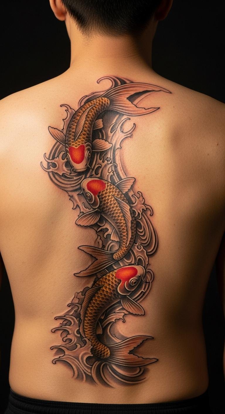 A koi fish journey tattoo represents perseverance on your back. Think of fish swimming up the spine, symbolizing growth. This style flows with grace. Sketch fish paths at your desk. Test with body art kits. Discuss flow with artists. A few hours total. Personalize with colors. Bold fins stand out. Keep it moist. Suited for determined people. Choose for motivation.