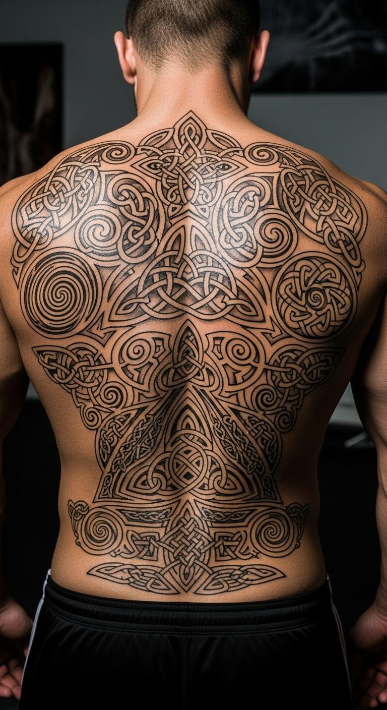 Celtic knot work tattoo weaves eternity on your back. Picture endless knots in the lower section, full of mystery. This style holds ancient vibes. Draw knots freehand. Use temporary designs online. Talk heritage with artists. Sessions as needed. Customize with initials. Bold weaves endure. Heal naturally. Ideal for heritage fans. Pick for timelessness.