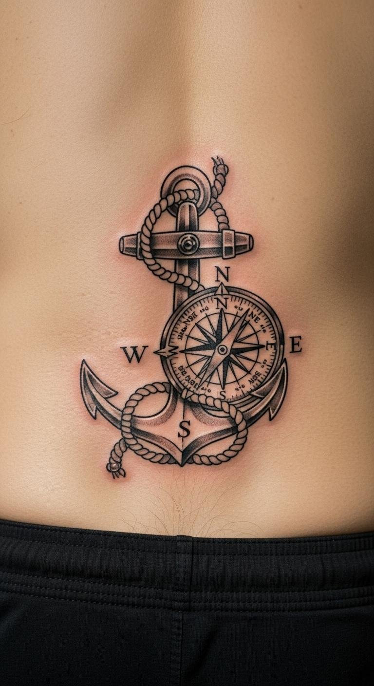 An anchor and compass tattoo grounds you on your back. Picture both symbols side by side for stability. This style keeps it real. Jot ideas down. Use stickers for fun. Talk navigation with artists. One go. Customize links. Bold icons last. Hide as needed. Great for sailors. Pick for steadiness.