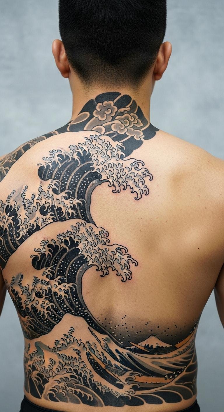Traditional Japanese waves tattoo brings culture to your back. Envision waves rolling across the full area, full of motion. This style honors history with classic lines. Research designs online for free. Try paper cutouts for placement. Find an expert artist and discuss via phone. Sessions may span a few visits. Add waves with meaning, like strength. Bold ink keeps it authentic. Care with simple routines. Fits history buffs. Start here for depth.