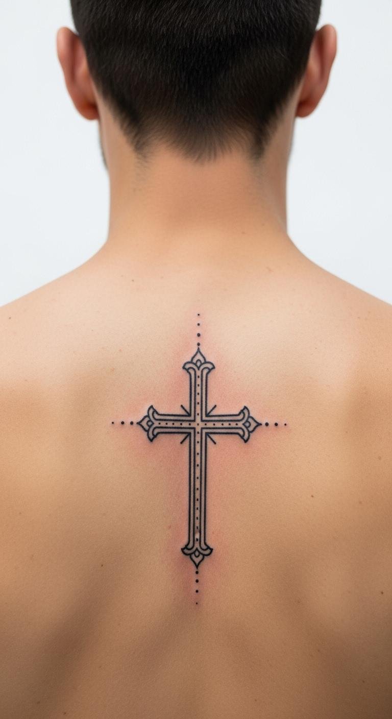 A symbolic cross design tattoo offers faith on your back. Picture a straight cross in the middle, simple yet profound. It stands for belief with minimal fuss. Draw it on with a pen first. Use adhesive versions for tests, cheap online. Share beliefs with your artist. One quick session works. Customize with dates or names. Bold lines hold strong. Hide under collars if needed. Good for spiritual folks. Pick this for peace.