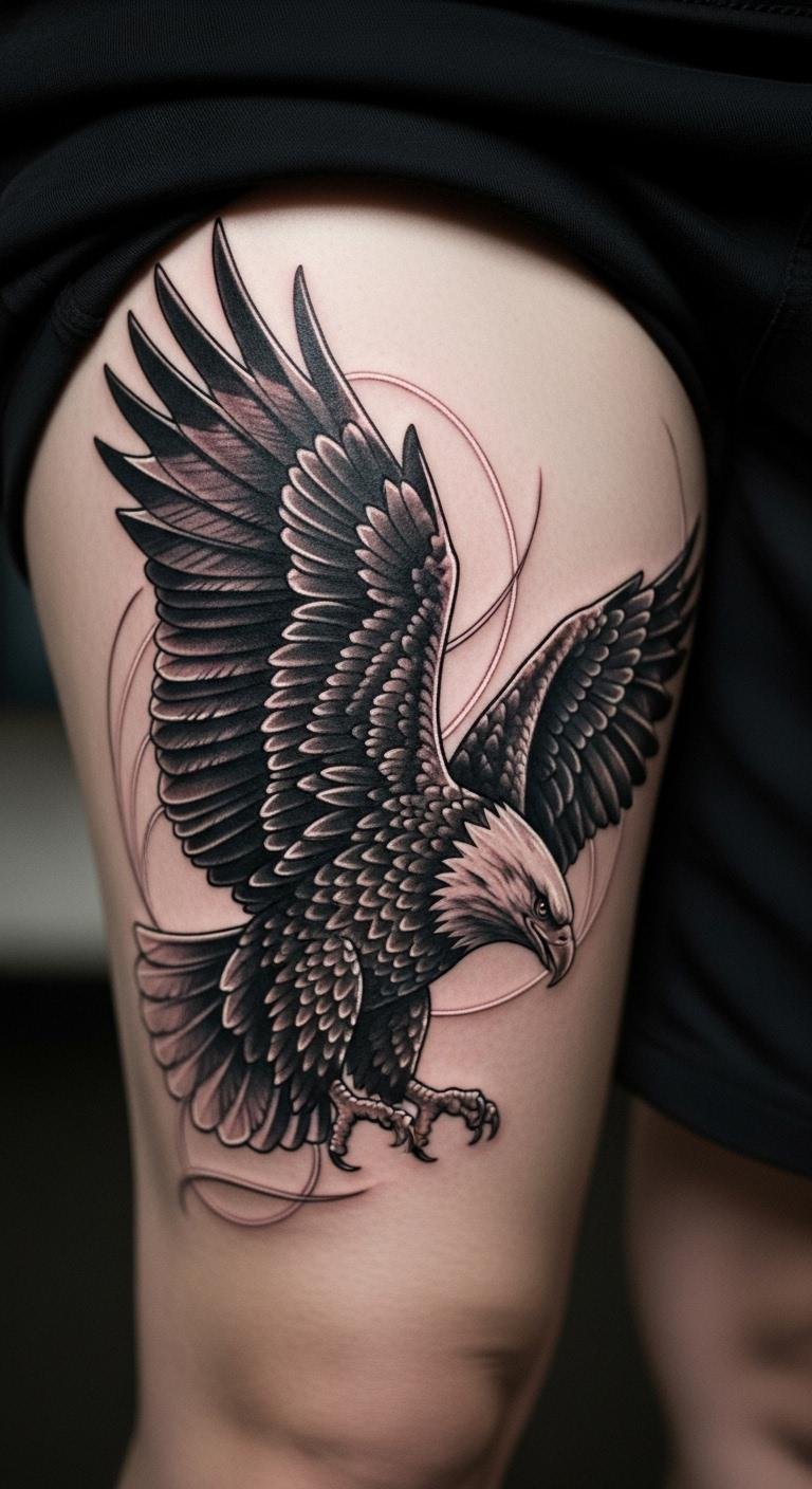 A minimalist thigh eagle keeps it understated. Tuck it away neatly. Sketch with minimal tools. Grab sparse ideas online. Choose lean inks. Use soft fabrics. Include bare essentials. Many opt for less. Test with strips. Place for subtlety. This idea suits minimalists. Draw plainly. Easy choices click.